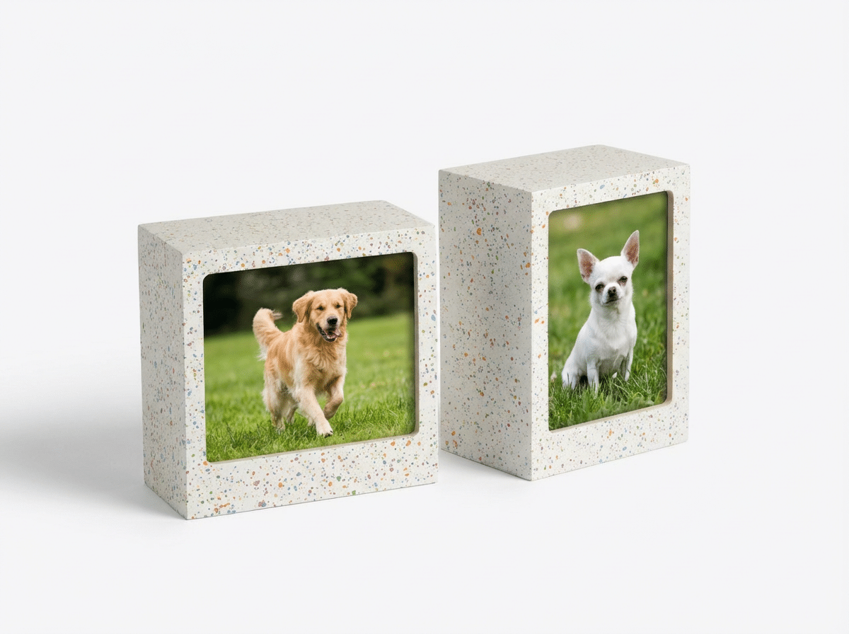 Diseñada para mascotas de hasta 25 kg, la urna Photobox brinda una forma respetuosa, estética y emocionalmente reconfortante de conservar las cenizas y el recuerdo de tu mascota. Una pieza pensada para quienes buscan simplicidad, dignidad y significado en un solo objeto.